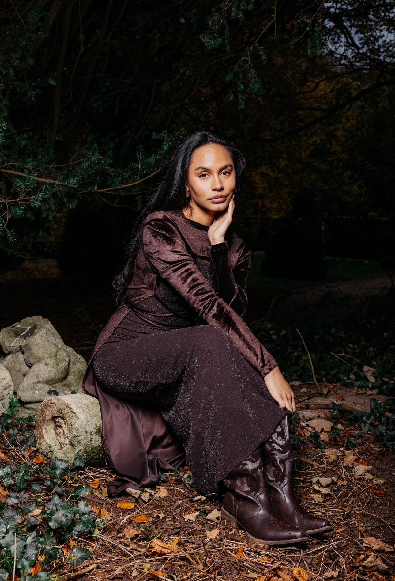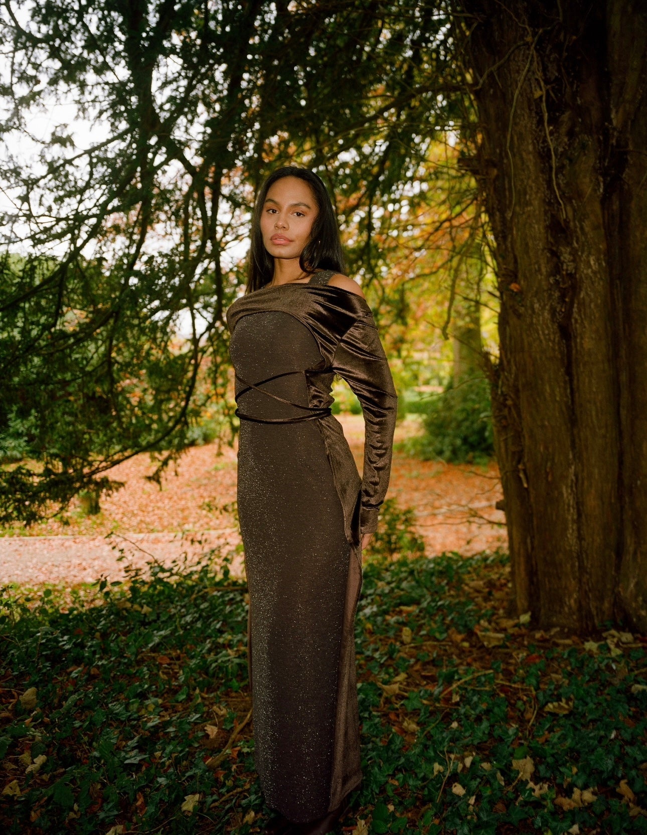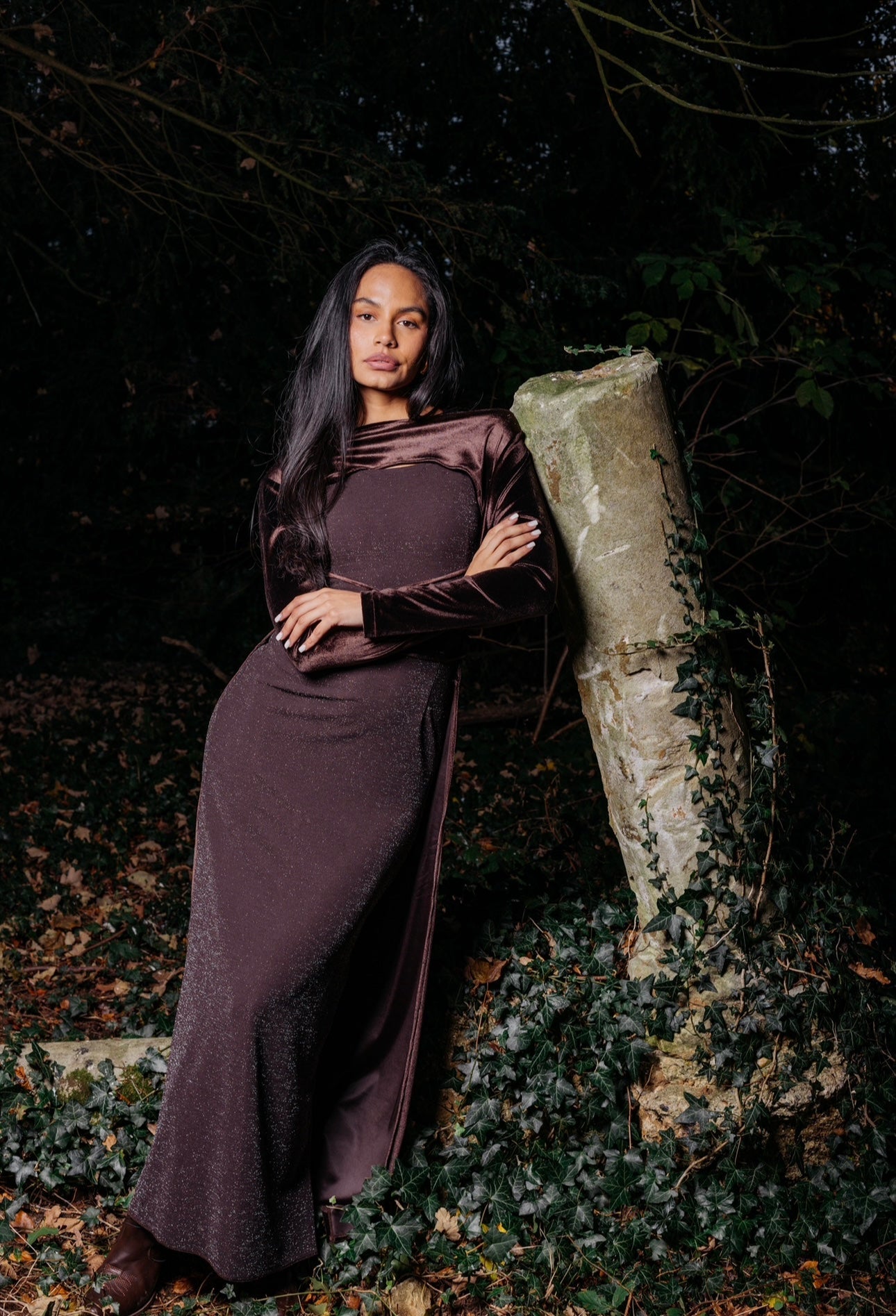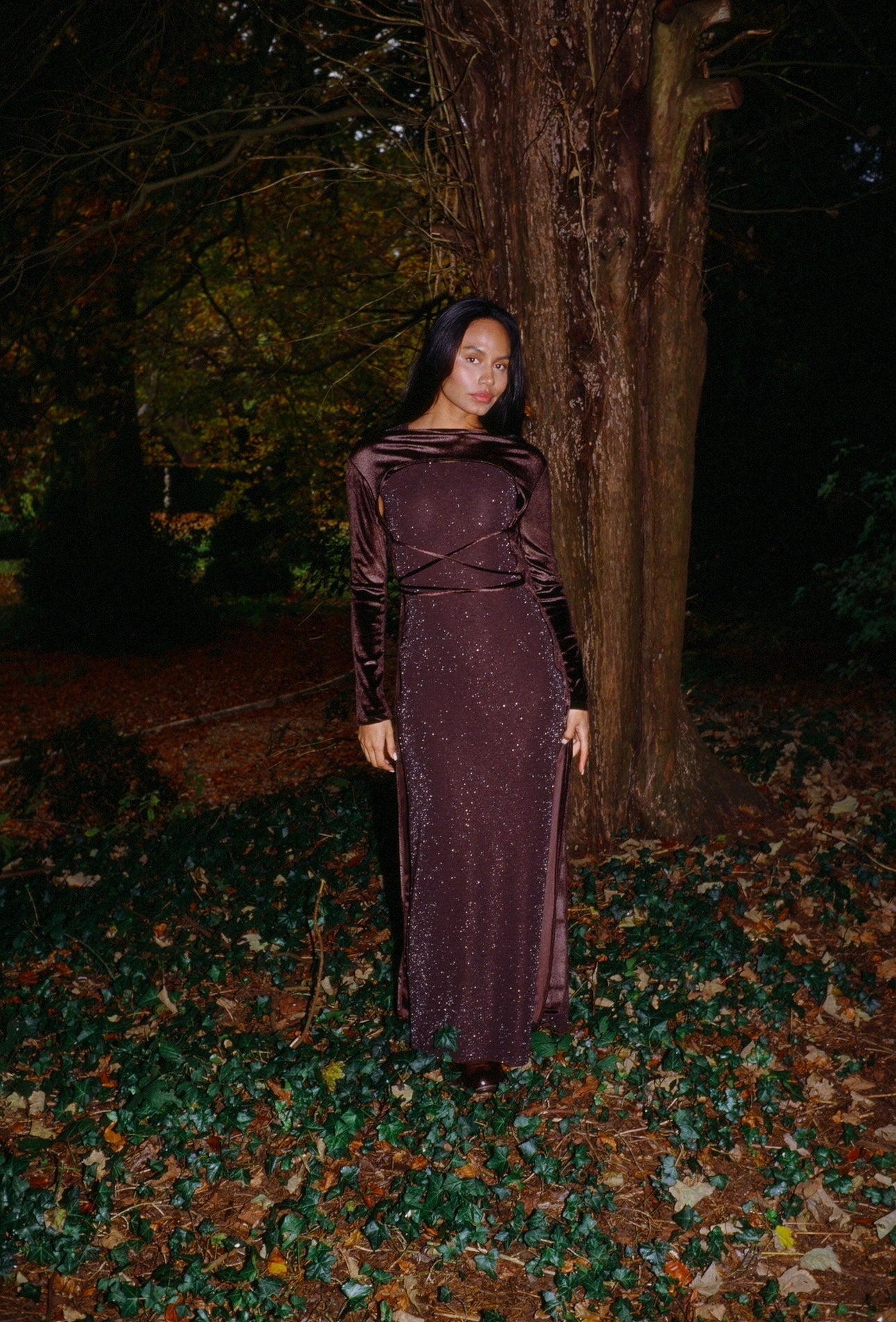 two piece set - velvet cape with ropes to tie around the waist & a tight sparkly dress